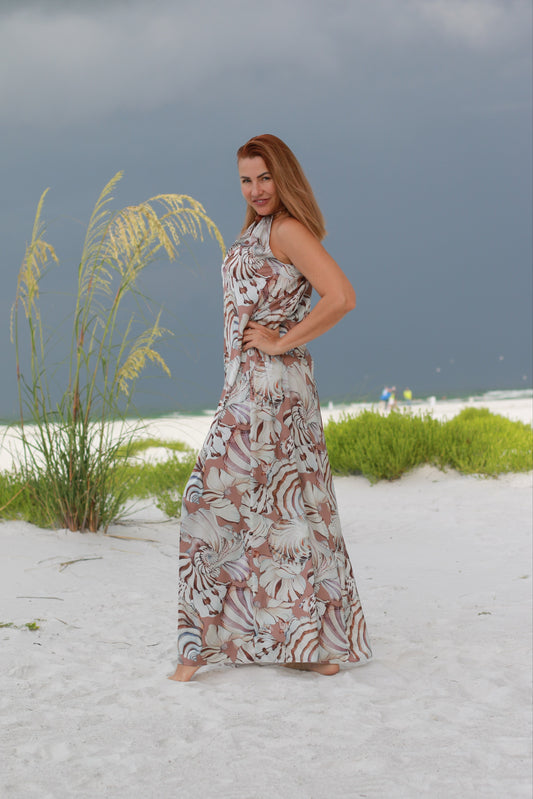 A flowing seashell-inspired print in warm coconut tones, Coco Sea Echo captures the rhythm of the tide and the serenity of coastal living. Its soft neutrals and organic swirls bring the calm of the shoreline into every piece, making it timelessly elegant and endlessly versatile