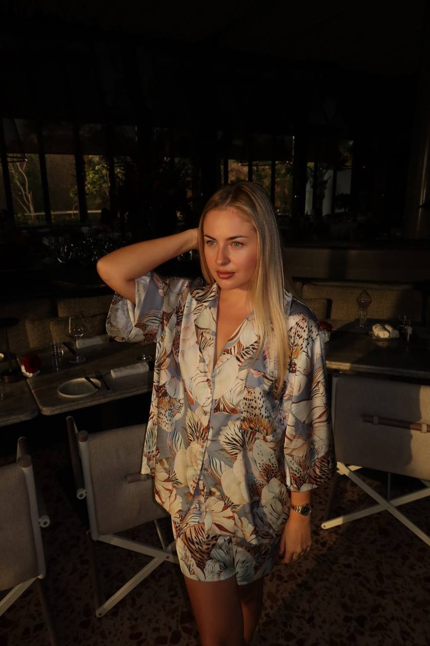 An ode to relaxed sophistication, the Set Hawaii is crafted in Italy from whisper-light chiffon designed to move with you like a gentle ocean breeze. This two-piece ensemble—featuring a button-up short-sleeve shirt and matching shorts—captures the art of ‘thrown-on elegance’—perfect for poolside getaways, sunlit brunches, or spontaneous sea-view escapades.